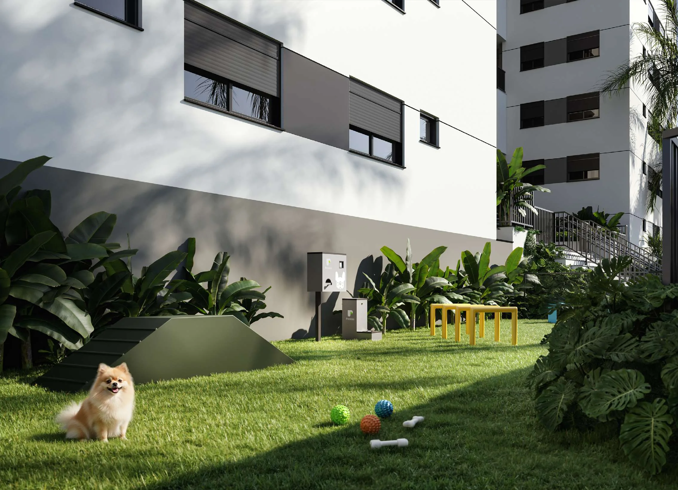 Um ambiente pensado para os animais de estimação: o espaço pet oferece área segura para higiene, cuidados e momentos de brincadeira, trazendo mais tranquilidade para você e bem-estar para o seu companheiro.