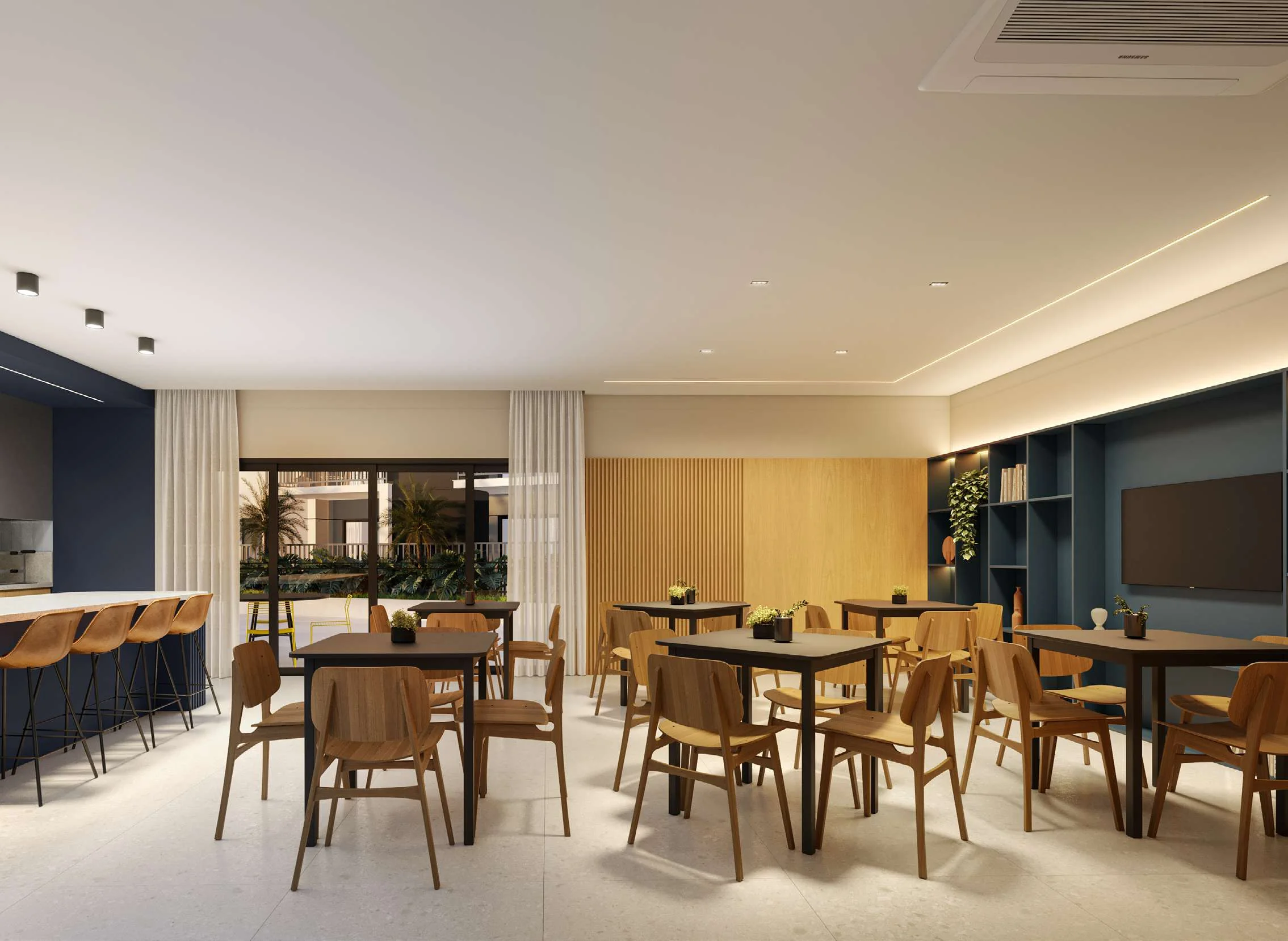 Conveniência ao alcance de poucos passos: o mercado integrado oferece produtos essenciais 24 horas por dia, facilitando a rotina e eliminando deslocamentos desnecessários.